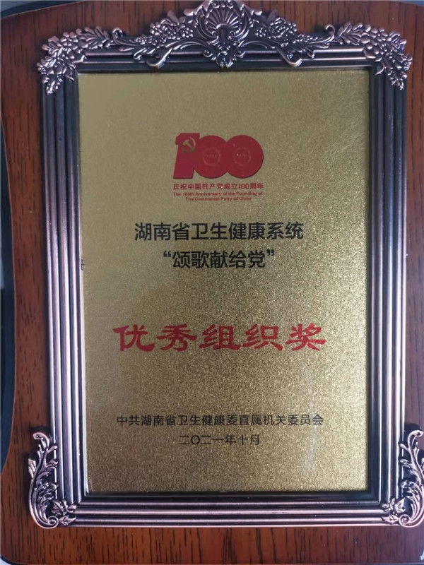 湖南省卫生健康系统“颂歌献给党”优秀组织奖