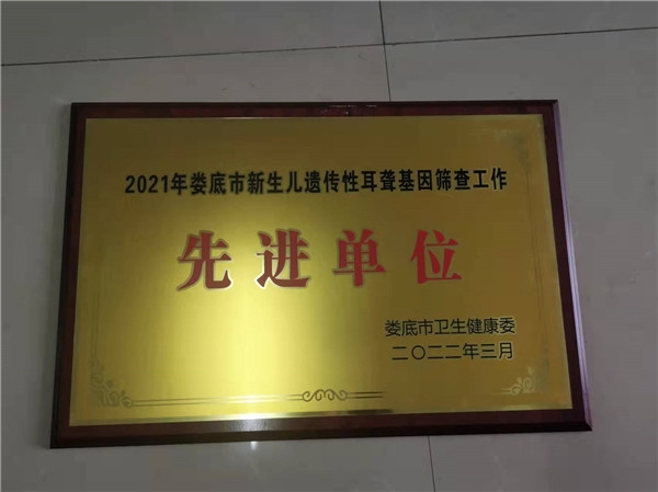 2021年娄底市新生儿遗传性耳聋基因筛查工作先进单位