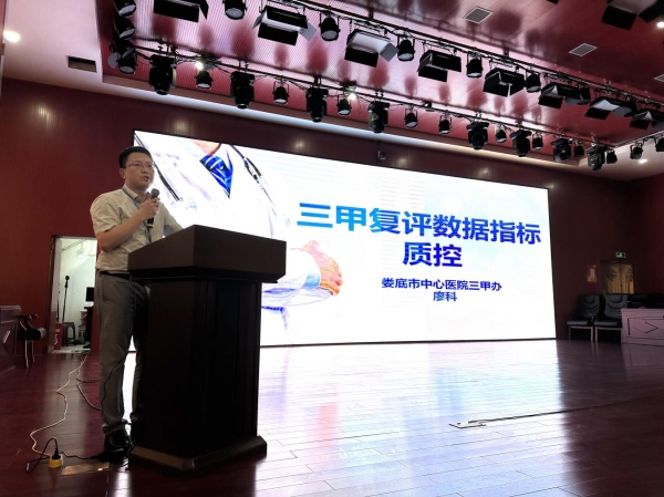 会上,三甲办主任医师张朝贵、主治医师廖科分别以《数据指标的几个相关问题》《三甲复评数据质控》为题进行深度分析,并对医院重点监测数据存在的问题予以现场剖析。