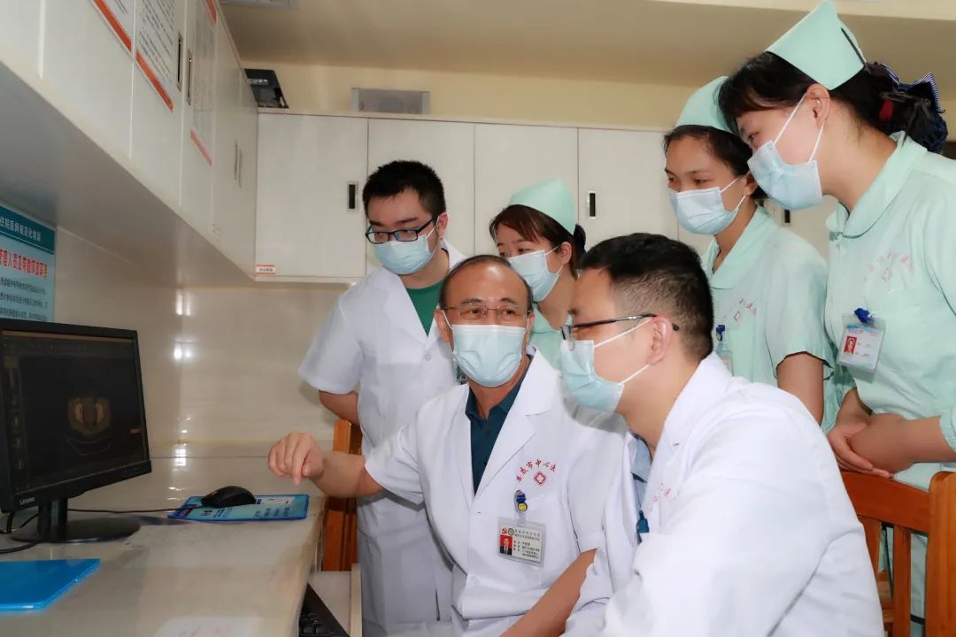 尹晓清教授(左二)正在指导下级医生