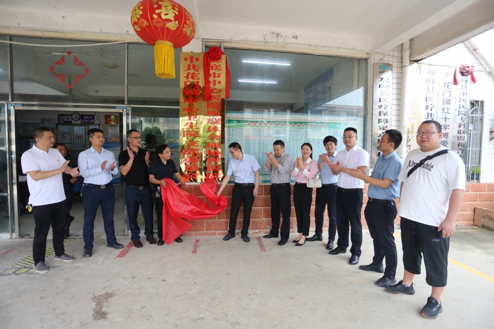 签约揭牌仪式上,彭福森与花门镇中心卫生院院长谢杰精签署医联体合作协议书,随后共同为“娄底市中心医院医联体全面协作医院”揭牌。