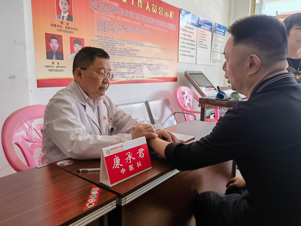 娄底市首届名中医、中医科主任医师康承君为村民认真把脉
