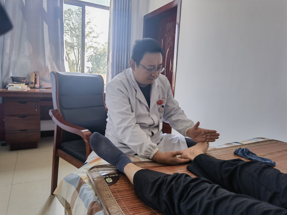 康复医学中心治疗部主管技师张彦明为村民做康复理疗