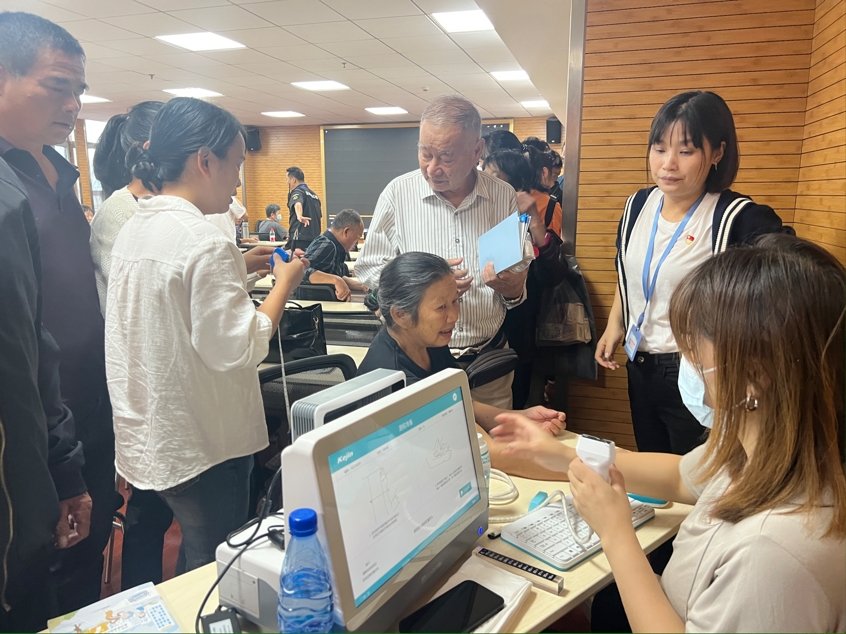 活动现场,内分泌科副主任、副主任医师雷成首先以《关爱骨骼健康 安享幸福生活》为题开展健康宣讲,为群众详细普及骨质疏松健康知识,引导群众更加科学、安全、便捷地预防和治疗骨骼相关疾病。血液内科和内分泌风湿免疫联合党支部副书记、内分泌科副主任医师龙红梅、副主任医师肖璐等专家耐心细致地为群众进行检查,普及相关健康知识,并免费发放“世界骨质疏松日”知识宣传手册。义诊现场还为群众提供了免费双能X线骨密度测量及血糖监测服务,让群众及时了解自己的骨密度和骨质量,对骨质疏松早预防、早诊断、早治疗。