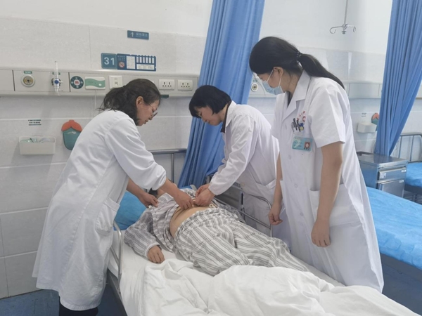 我院妇科副主任、主任医师邱奕带领医生检查毛女士康复情况