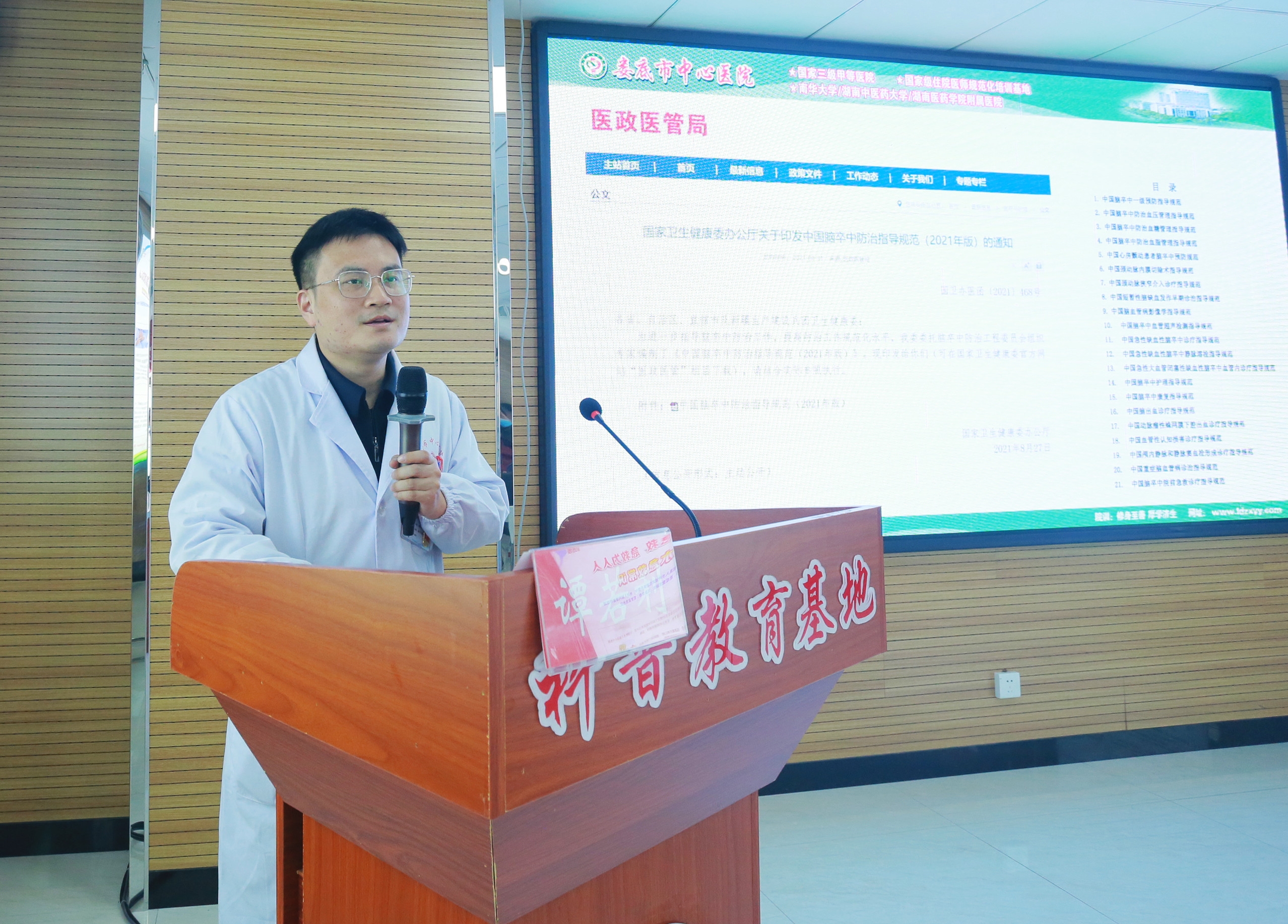 每年娄底市医学会神经内科专委会都会组织卒中就医的培训与巡讲,由我院牵头在娄底市各县市区进行技术培训与科普宣教,普及脑卒中技术知识,推动各医院脑卒中技术进步,提升娄底市脑卒中防治的整体水平。2017年,谭若利作为娄底市医学会神经内科专委会秘书,被评为“娄底市卒中防治先进个人”。