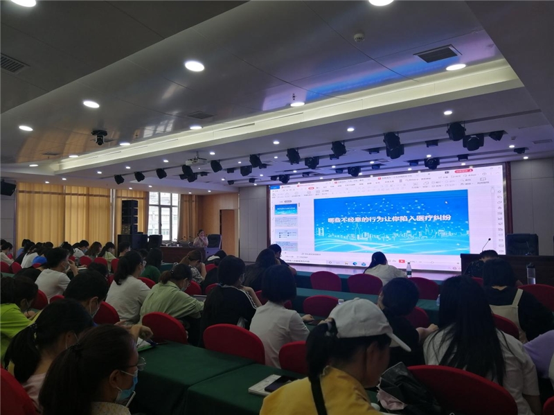 安全科科长颜晓燕将《民法典》、《中华人民共和国侵权责任法》与医疗工作有机结合,通过实际案例,就医疗安全的重要性与医疗纠纷的防范为同学们进行了深入剖析和讲解。她还对学生们进行了人际交往和沟通技巧培训,要求大家在与患者沟通时要站在对方的角度思考问题,尽量照顾患者及家属的感受,努力构建良好的医患关系,这不仅有利于疾病的诊疗,同时也为医院树立良好口碑。