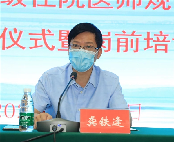 龚铁逢在开班仪式的讲话中表示,热烈欢迎新学员的到来并祝贺他们加入医院住院医师规范化培训的新集体,同时对新学员们提出三点要求:一要尊师重教,维护医院良好形象;二是勤奋好学,努力提高医疗技术;三是严守纪律,求真务实扎实工作。