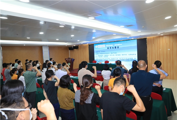 开班仪式上,我院教学办主任杨翊翔发表了热情洋溢的欢迎辞;教学办副主任彭喜开宣读了71名住院医师新学员名单;新学员代表张侃上台表决心;重症医学科(一区)主任谢瑜作为专业基地代表进行了发言;现场全体人员面对《医学生誓言》进行庄严宣誓。