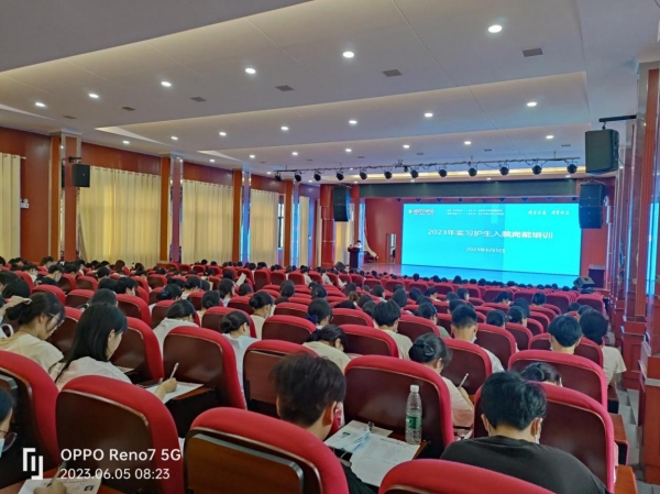 为夯实实习护生教学管理,提高其综合素质,6月5日,我院在综合楼七楼大礼堂开展了2023年实习护生入院岗前培训,我院党委委员、副院长杜友红出席会议并授课,来自14所院校的237名即将走向实习岗位的护理生参加了培训。