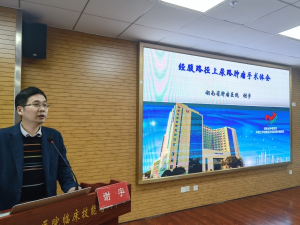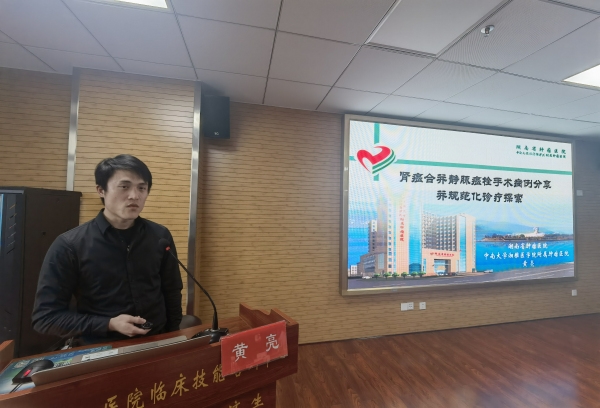 在专家讲座环节,湖南省肿瘤医院谢宇教授、裴夏明、黄亮、刘侃等先后就《经腹腔入路泌尿肿瘤腹腔镜手术探讨》《肾癌的综合治疗》《膀胱癌的综合治疗》《前列腺癌病例MDT治疗学术讨论》进行精彩授课。随后,湖南省肿瘤医院汪洁教授、我院龙卫兵副教授、湖南省肿瘤医院泌尿外科护士长张慧妮等与会专家还就临床工作中遇到的相关问题进行深入讨论。