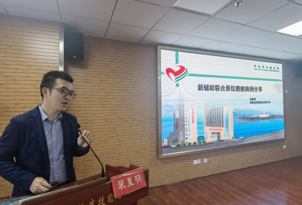 在接下来进行的病例讨论环节中,来自我院的主治医师童亮、副教授龙卫兵先后就《转移性前列腺癌病例诊治分享》《局部晚期膀胱癌综合治疗与随访》为题进行了分享。湖南省肿瘤医院黄再捷教授、我院肿瘤科陈尚忠教授、彭亮副教授等与会专家也与大家进行了相关讨论。