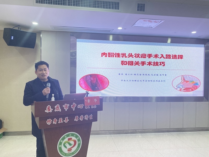 会上,中南大学湘雅医院章华教授、中南大学湘雅二医院李仕晟教授、我院彭福森教授先后就《内翻性乳头状瘤手术入路选择和相关手术技巧》《纤维喉镜操作技巧及手术治疗》《经胸经口联合入路甲状腺癌根治术》等课题进行了精彩的授课。现场学术气氛浓厚,听众纷纷表示受益良多。