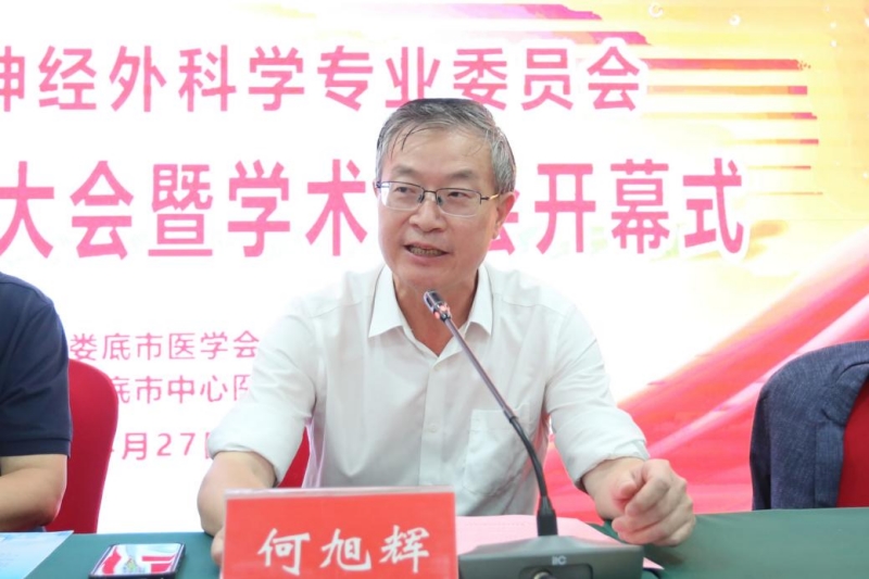 娄底市卫健委党组成员、副主任何旭辉出席会议并讲话,我院副院长彭福森致欢迎辞,市医学会副会长兼秘书长聂斌主持开幕式并宣布新一届委员会人员名单。姜维喜对新一届神经外科学专业委员会成员表示祝贺并对娄底神经外科学事业发展提出殷切期望。新当选的委员会主任委员、我院神经外科学科主任刘序斌进行工作汇报并作表态发言。