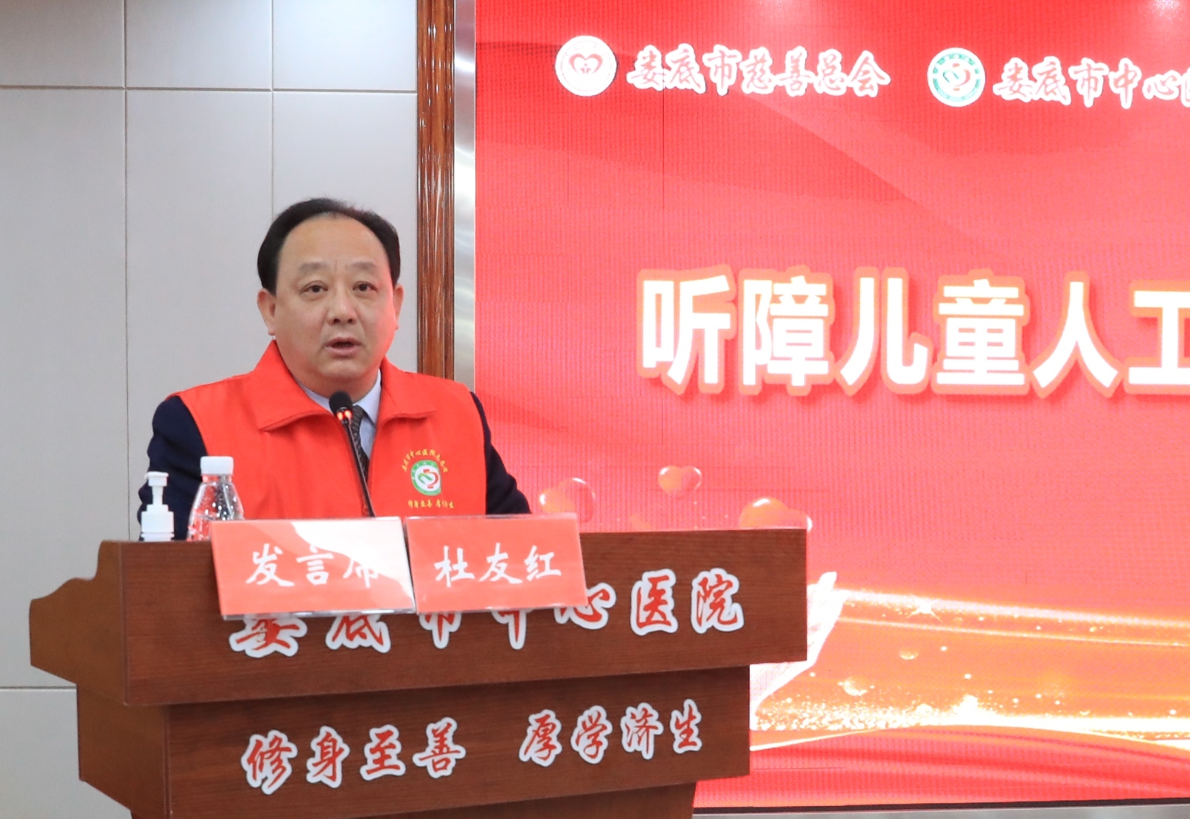 1月15日,由娄底市慈善总会和我院联合举办的2022年人工耳蜗植入慈善救助项目启动仪式成功举行。娄底市人大常委会原党组书记、常务副主任,市慈善总会会长谢志雄出席并宣布人工耳蜗手术项目暨0-6岁听障儿童人工耳蜗手术慈善资助项目正式启动。中南大学湘雅二医院耳鼻咽喉头颈外科名誉主任、湖南省“启聪扶贫计划”人工耳蜗项目专家组组长、原湖南省人民政府参事、省人大常委会委员谢鼎华教授,市医保局党组书记、局长倪志铭,市残联党组书记、理事长曾晴川,市卫健委二级调研员王健云,市民政局三级调研员王志辉出席会议并讲话。省市残联、市卫健委及市县医保局和我院职工代表出席活动。启动仪式由我院党委书记吴小阶主持。