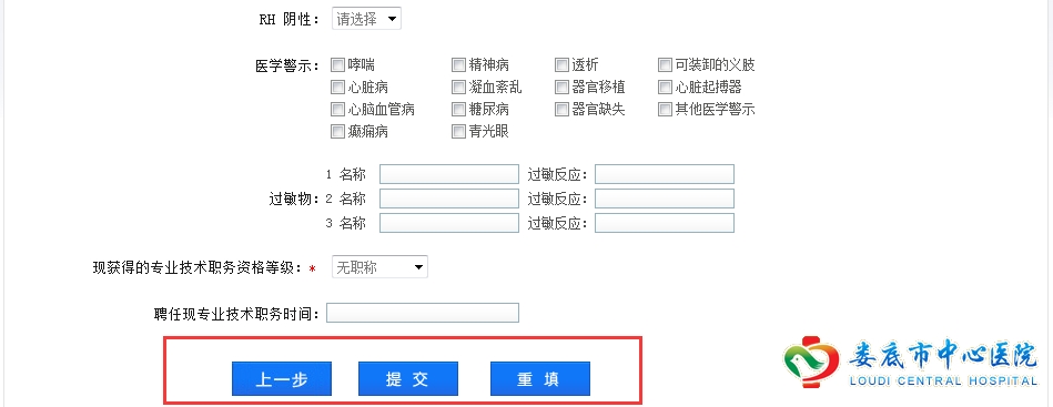 在点击下一步后,此页面填写完毕后,如果想重新填写上一页的内容,那么点击“上一步”,如果信息错误,想重新填写,可以点击“重填”,如果信息正确,点击“提交”。
