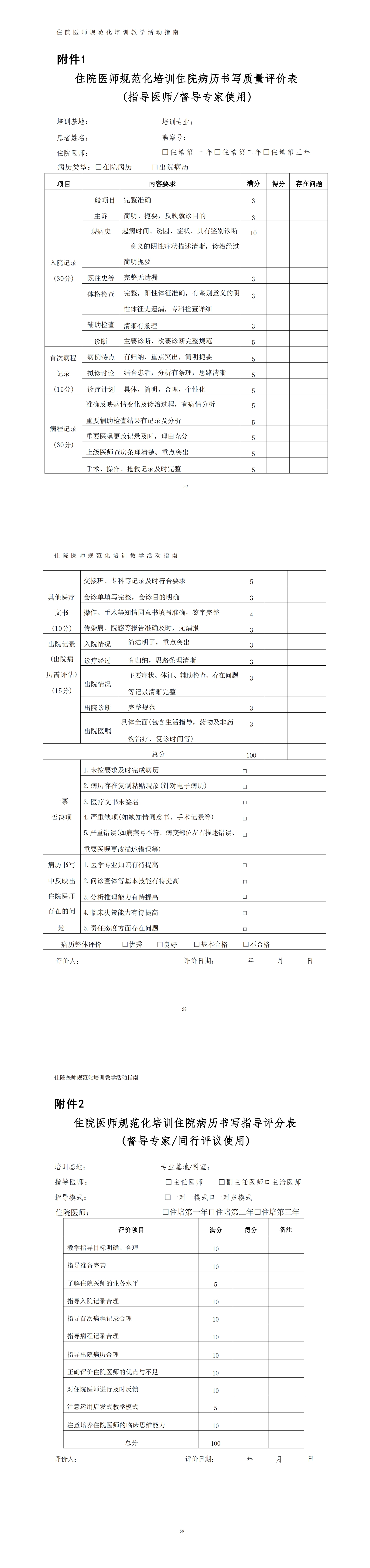 6.2 住院医师规范化培训住院病历书写指导评分表(督导专家/同行评议使用)