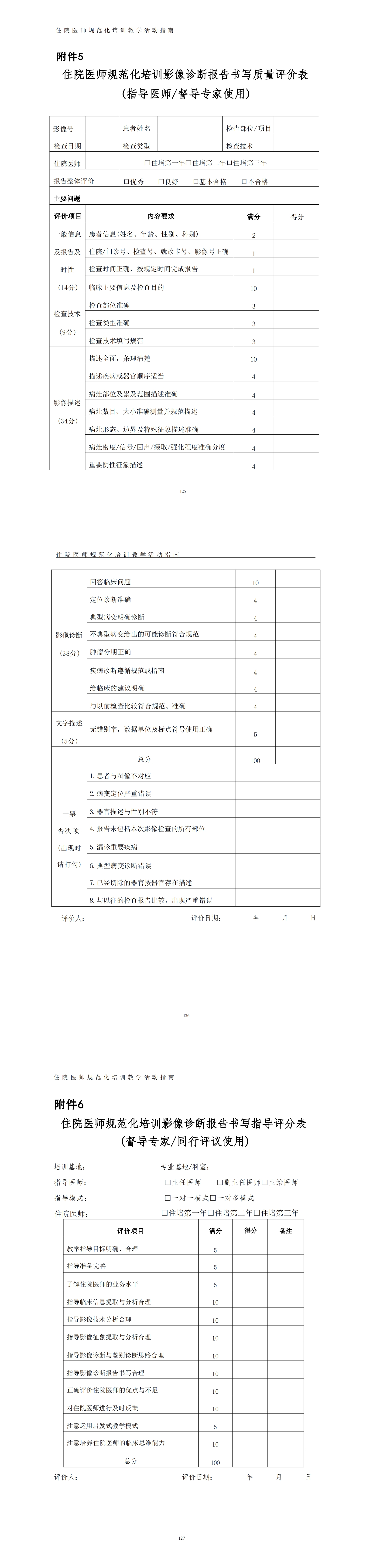 6.5 住院医师规范化培训影像诊断报告书写质量评价表(指导医师/督导专家使 用 )