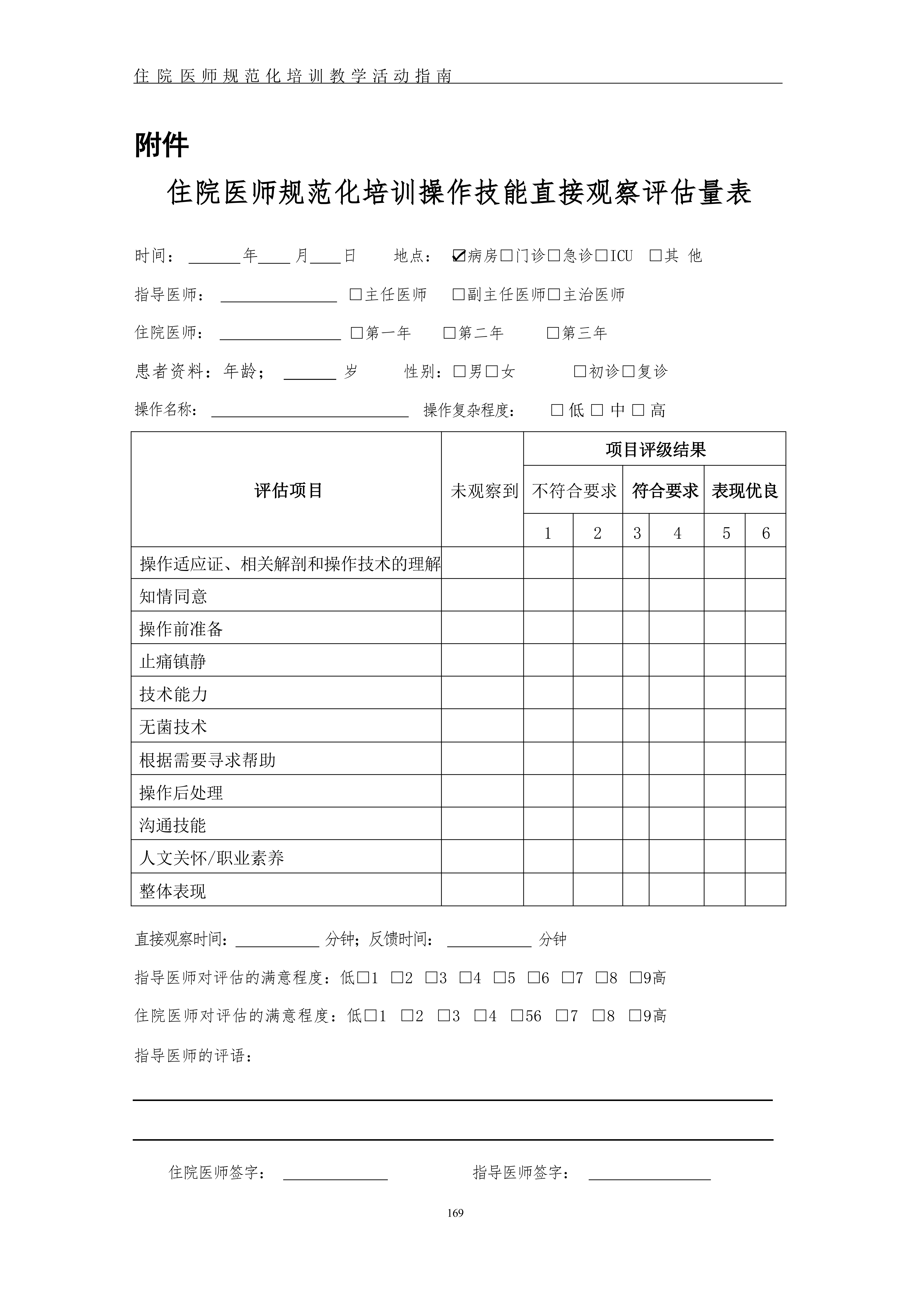 住院医师规范化培训操作技能直接观察评估量表