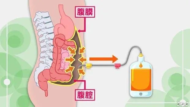 腹膜透析是一种治疗方法,临床上用在终末期肾病患者中比较多,其治疗原理是依据我们人体腹膜半渗透膜的特点,利用重力原理将透析液由导管输送至目标区域,溶质(如尿素、肌酐和钾)从腹膜毛细血管中的血液扩散到透析液,葡萄糖从透析液扩散到腹膜毛细血管之后,渗透梯度减小,超滤速度逐渐减慢。通过腹腔透析液不断地更换,帮助患者排除血液中的废物和多余液体,腹膜就可以达到净化血液的目的了。腹膜透析的效果和血液透析相当。