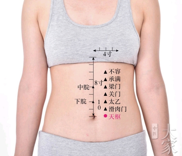 双掌交叠顺时针摩腹5分钟(速度2圈/秒),点按中脘、天枢穴各3分钟,增强脾胃运化。