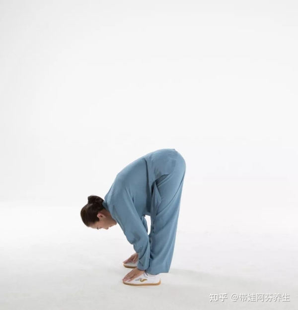 要领:前屈时呼气,起身时吸气 。