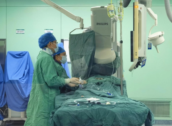 “患者年事已高,身体各项机能差,手术就好比在‘刀尖上跳舞’,但家属救治意愿强烈,我们也定全力以赴!”段世英和胸痛中心介入团队在极短时间内制订手术方案,做好术中可能出现的心律失常、低血压休克等情况的应对措施。