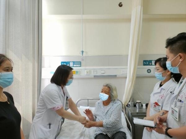 在王奶奶住院期间,医护人员密切关注她的身体状况。为了缓解她治疗时的不安情绪,大家主动与王奶奶沟通交流,倾听她的想法,鼓励她积极治疗。放疗期间,王奶奶出现了不想吃饭、腹泻等情况,吴华医生给予了及时处理和耐心解答。这种细致入微的关怀,不仅赢得了王奶奶和家人的信任,还为她的康复治疗创造了良好的环境。通过25次治疗,王奶奶的病情得到了控制,有效地缓解了她的痛苦。