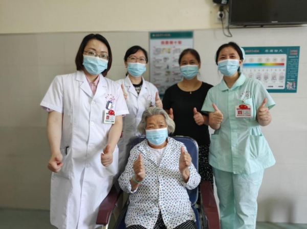 “姑娘们真的太棒了!”101岁高龄的王奶奶紧握着我院医护人员的手,满脸笑意地称赞着。这是在我院肿瘤内科二病区床旁交接班时发生的一幕,肿瘤内科二病区主任、主任医师李燕正在认真查看王奶奶的情况,鼓励她积极治疗,王奶奶笑着表达了对医护人员精心治疗和细心照料的感谢。