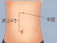 中脘穴:在上腹部,前正中线上,当脐中上4寸。