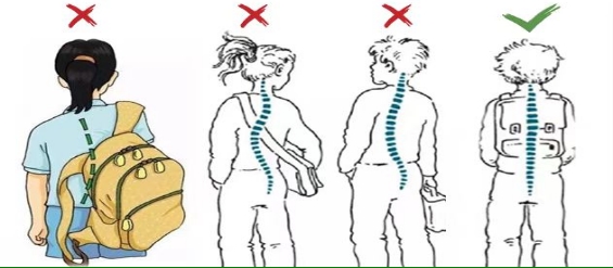 书包重量<体重10%,单肩包、手提包是禁忌