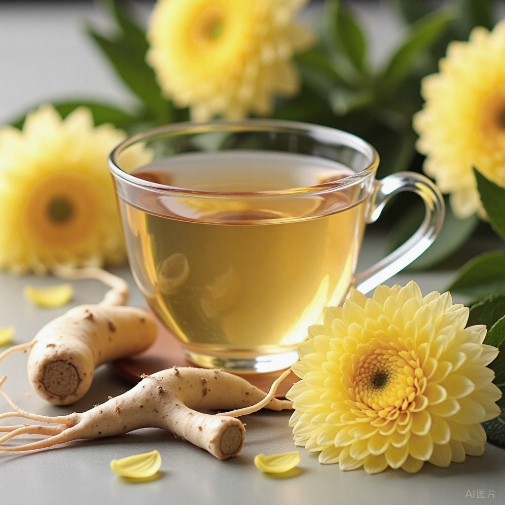 菊花人参元气茶:菊花5朵,人参3-6g,热水闷泡15分钟即可。人参能大补元气、安神增智、生津,菊花散风清热,平肝明目,清热解毒,长期服用能提高免疫力抗疲劳。