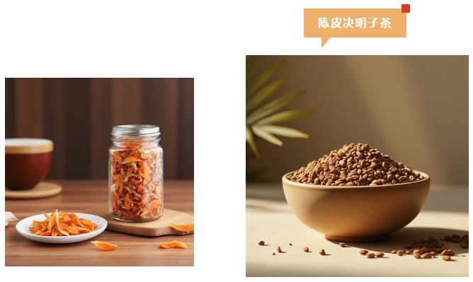 陈皮决明子茶:陈皮5g,决明子15g,煎汤代茶饮,能燥湿化痰,清肝降脂,适合肝郁气滞型脂肪肝。