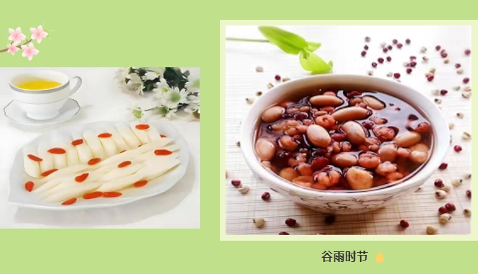 祛湿食疗:薏米赤豆粥、茯苓冬瓜汤;谷雨茶(雨前茶)清热益脾。