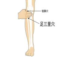 足三里穴:在小腿外侧,犊鼻(外膝眼)下3寸,胫骨前缘1横指。