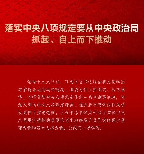 学习画报 | 落实中央八项规定要从中央政治局抓起、自上而下推动