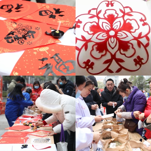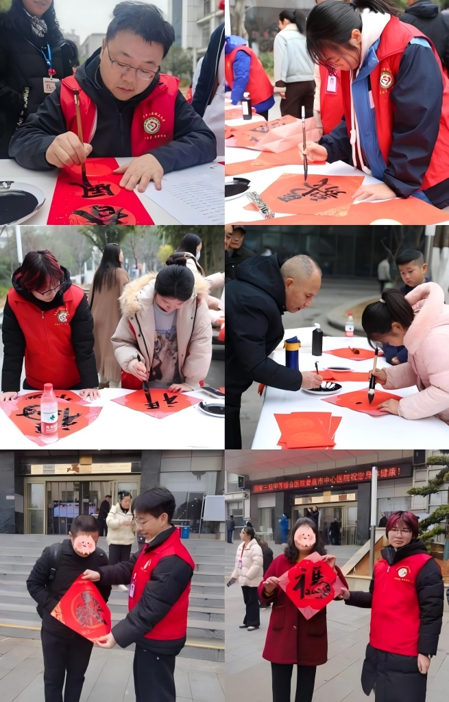 市集现场精心打造“福运定制”“非遗体验”“好运接龙”三大主题展区,创新推出“集福章”打卡形式,吸引众多市民与患者踊跃参与。墨香、药香、纸香交织萦绕,欢声、笑语、喝彩此起彼伏,浓郁的新年氛围在娄底市中心医院门诊楼前悄然升腾。