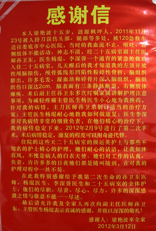 娄底市中心医院 版权所有 2006 备案号:湘ICP备11018487号-1 湘卫网申字(2011)第016号 地址:湖南省娄底市长青中街51号 制作维护:娄底市国联信息服务有限公司 娄底市中心医院 宣传外联部 乘车路线:市内1、3、6、11、13、19、20路公交直达 |