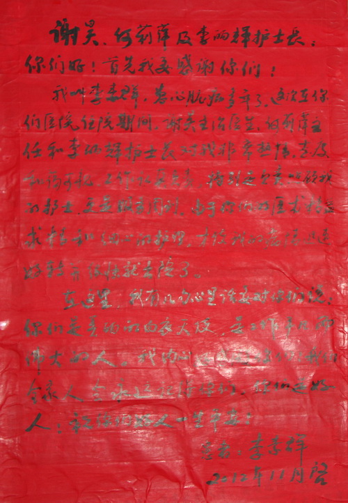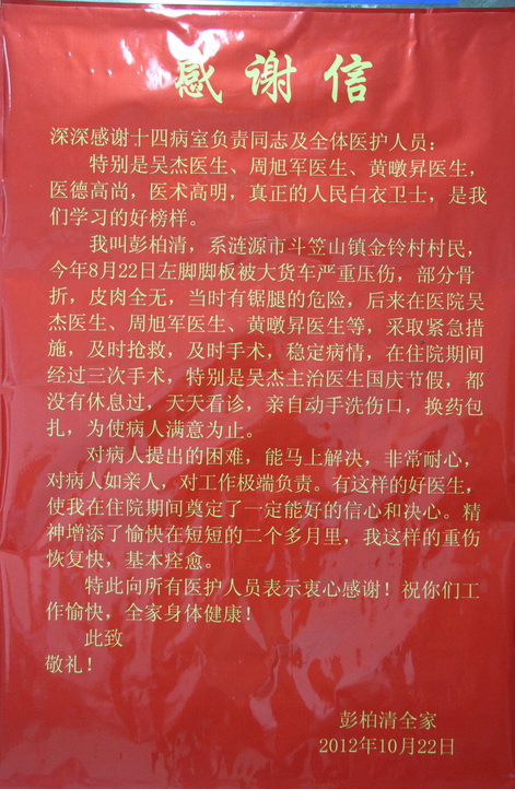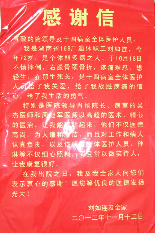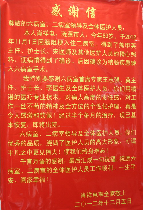 2012年第四季度部分感谢信
