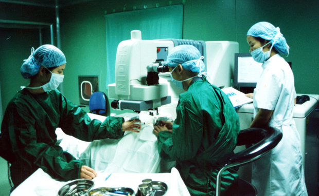 眼视光中心投资600余万元,引进世界一流的日本尼德克全套准分子激光近视治疗仪.图为手术现场