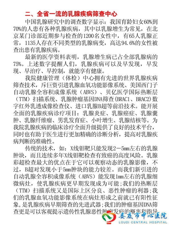 乳腺彩超 | 进一步筛查乳腺增生、乳腺包块、乳腺癌 | 100元 |