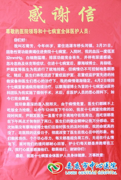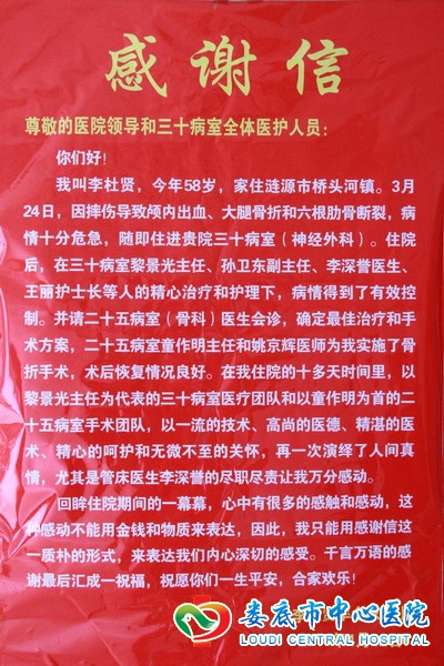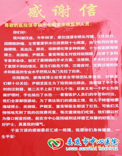 娄底市中心医院 版权所有 2006 备案号:湘ICP备11018487号-1 湘卫网申字(2011)第016号 地址:湖南省娄底市长青中街51号 制作维护:娄底市国联信息服务有限公司 娄底市中心医院 宣传外联部 乘车路线:市内1、3、6、11、13、19、20路公交直达 |