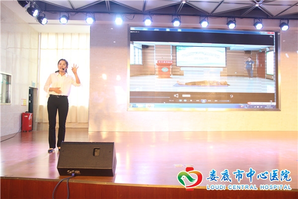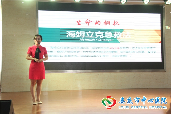 比赛中,我院儿童保健康复中心主治医生刘冰雪以《拥抱生命》为题,凭借自己丰富的专业知识、流畅自然的语言表达,结合真人模拟的方式,向与会人员详细讲解了当人体不幸出现气管异物时,如何正确地使用海姆立克急救法挽救病人的生命;我院120急救站护士长王旭容以《面临猝死,你能做什么》为题,运用PPT视频的方式,完整地展示了心肺复苏急救操作技术,富有激情地讲解了心肺复苏的整个操作流程、操作方法及注意事项,两位选手良好的精神面貌、专业的技术水准,准确的语言表达赢得了与会领导、评委及在场观众的阵阵掌声。