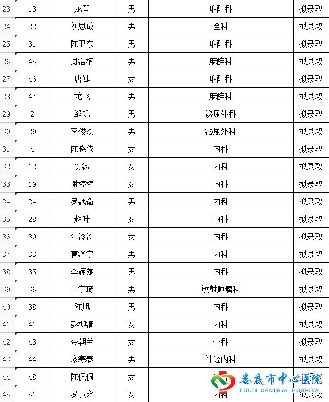 名单:娄底市中心医院2019年住院医师规范化培训第一志愿拟录取名单