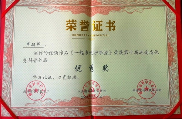 眼目传神,每一双孩子的眼睛都是他们纯洁心灵的窗口,不应有一丝阴霾。恪守着这一信念,在临床工作的日日夜夜,罗朝晖化身“光明卫士”,春风化雨,细心耕耘,无微不至地守护每一位娄底少年儿童那份清澈明亮!