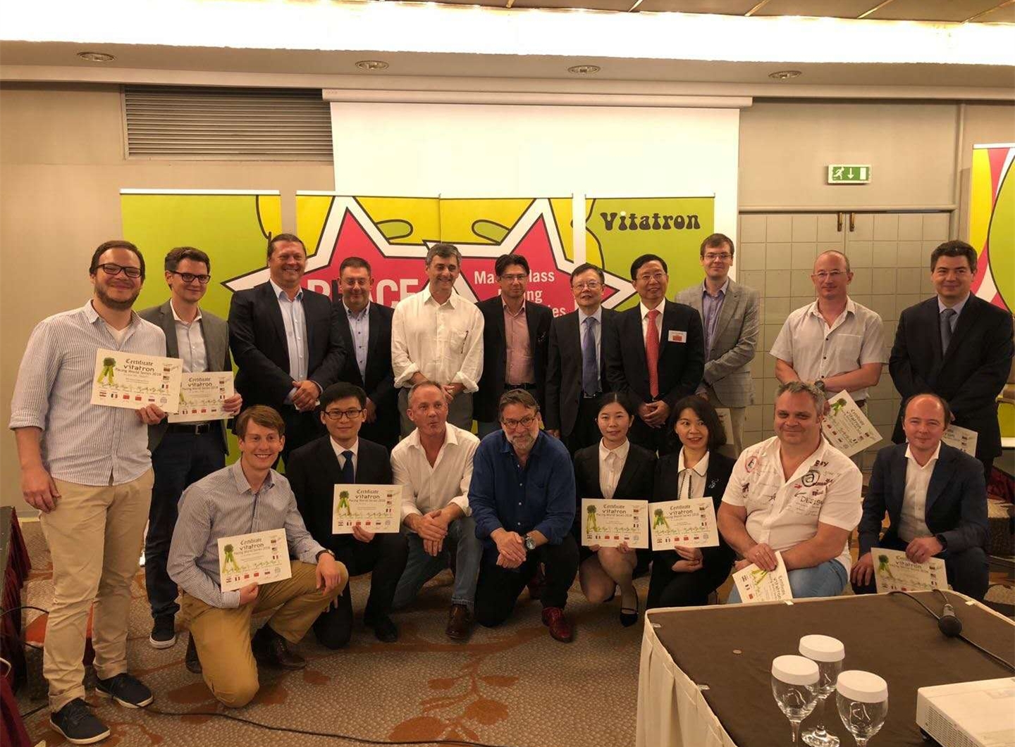 在希腊雅典举办的第二届“绿动新智惠·起博世界杯”全球总决赛上陈洁(前排右三)获优胜奖