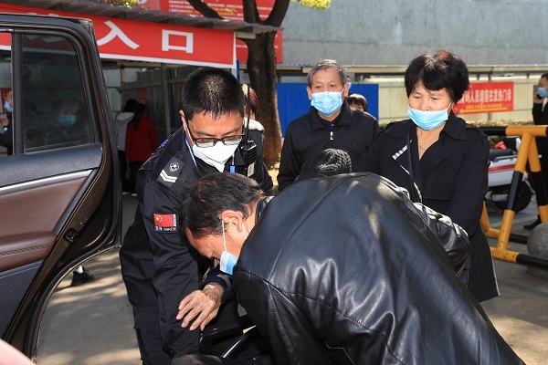 2020年,周益强的岗位调整到住院部A区出口处。于是,他又成了此处的一道亮丽风景。“他的着装总是工工整整,手上的手套永远都是雪白。记忆力好,人又热情,跟经过的人都是客客气气地打招呼。平时我们窗口有点什么事,他都会主动来帮忙。”提起周益强,一旁医保窗口的工作人员赞不绝口,“他从来不迟到早退一分钟,哪怕是去洗手间都要请旁边的人帮他看一下。他上班的时候,这一块的卫生永远干干净净,有时候下雨地上有点水或泥巴,他都会马上拖干净。患者经常接触的开关按钮,他时不时就用酒精消毒,保障大家的安全。”