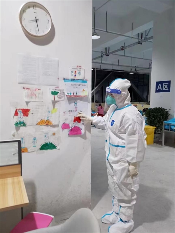 住在方舱里的藏民小朋友画画送给医务人员