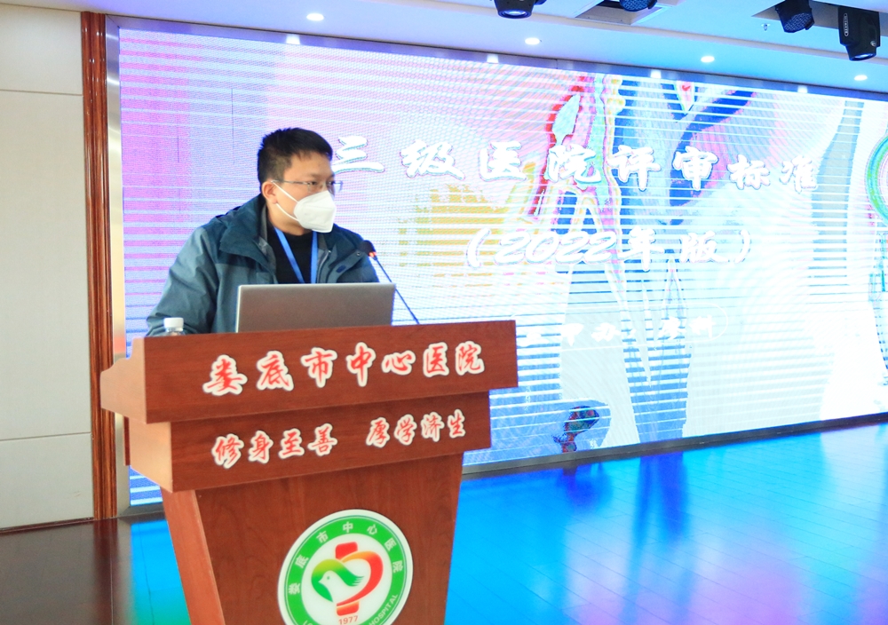 会上,七病室(神经外科)主治医师廖科详细解读了《三级医院评审标准(2022年版)湖南省实施细则》,分析了现行评审标准和以前评审标准的区别,讲解了 现行评审标准的侧重点及评审需要加强和注意的相关条款。